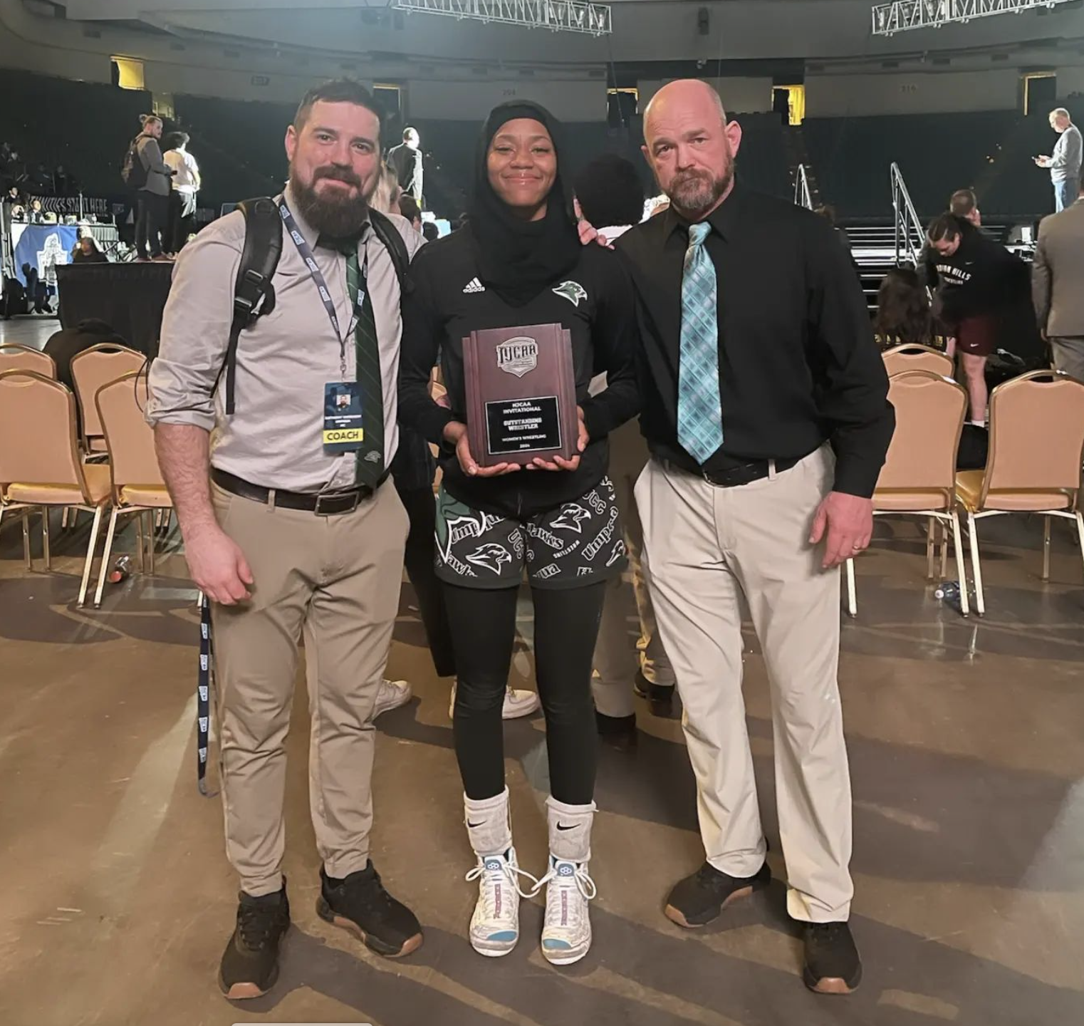 Umpqua sophomore Zainab Ibrahim, a Portland native, won the national title at 130 pounds. Ibrahim was the top-seed in the weight class and bested the 2-seed Bronwyn Brenneman of Iowa Central 10-0 for the title.