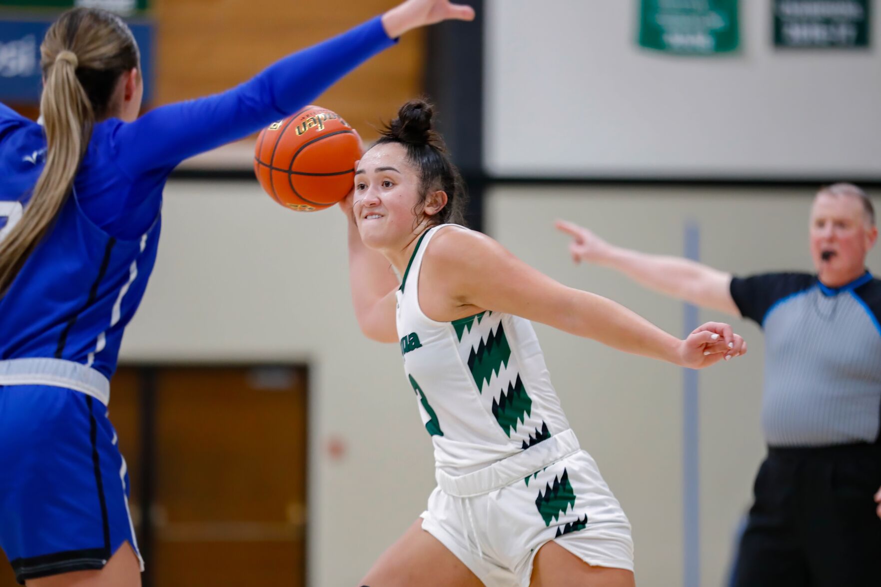 UCC’s Brooklyn Fely (3) swept the top honors in the All-South Region after leading the Riverhawks to a 25-4 overall record in 2023-24. (PHOTO: Nathan Miller/The News-Review)