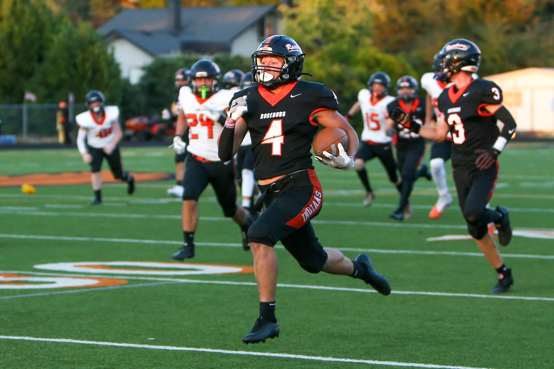 Roseburg (1-3, 0-2 SD4) scored its only touchdown of the night on the opening kickoff. Senior Paxton Burke needed just 14 seconds to weave his way 83 yards through the Crater coverage team for a special teams score. It was the first touchdown of the season for Burke. Remy Heurta made the point after try to give the Tribe a 7-0 advantage.