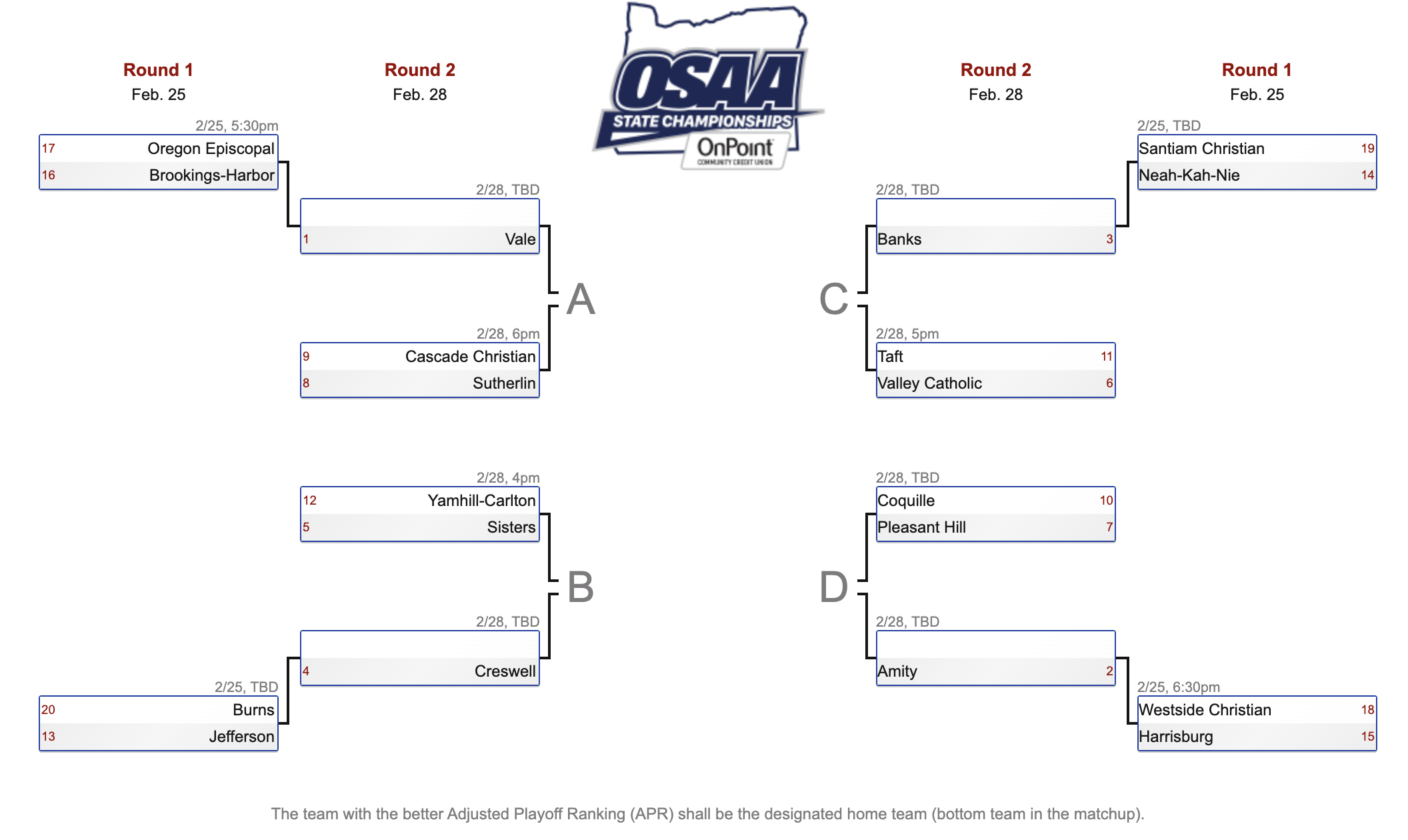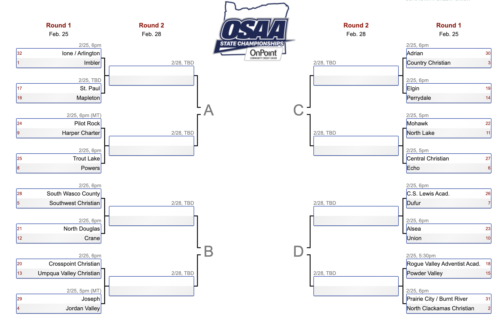 The high school basketball playoff brackets have been finalized for the small-school classifications in Oregon. Douglas County will be represented by a number of local girls’ basketball teams looking to bring home a trophy this season. Here’s a look at the first two rounds of the brackets. Games begin later this week.