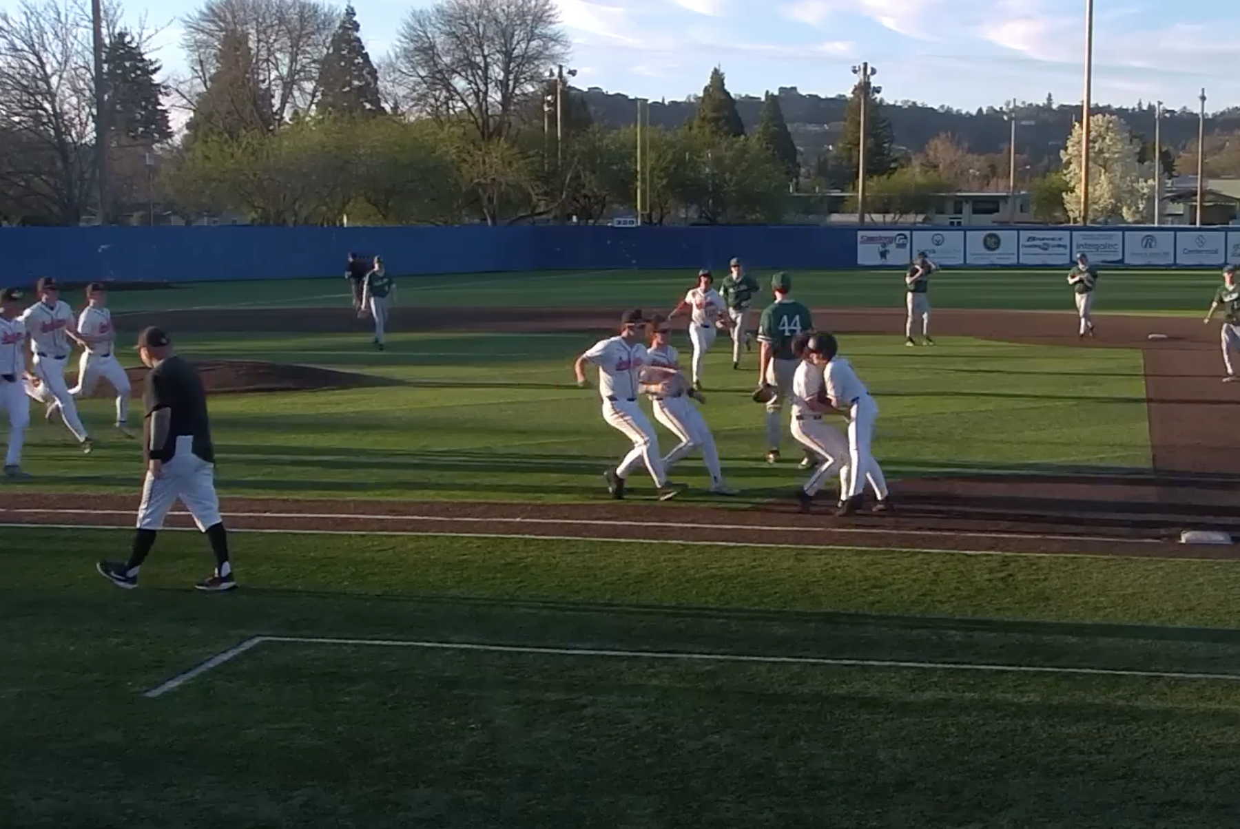 “Great job by Mason Young to come up with their infield in, and an extra infielder in, to hit a ground ball that got the job done,” Roseburg coach Troy Thompson said. “That’s what we talk about all the time, come through when you have the opportunity and he came through for us in a big way there.”